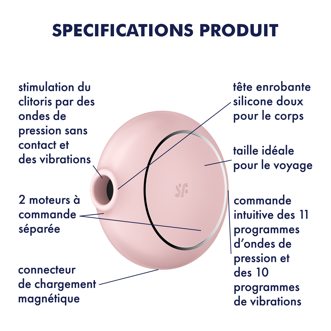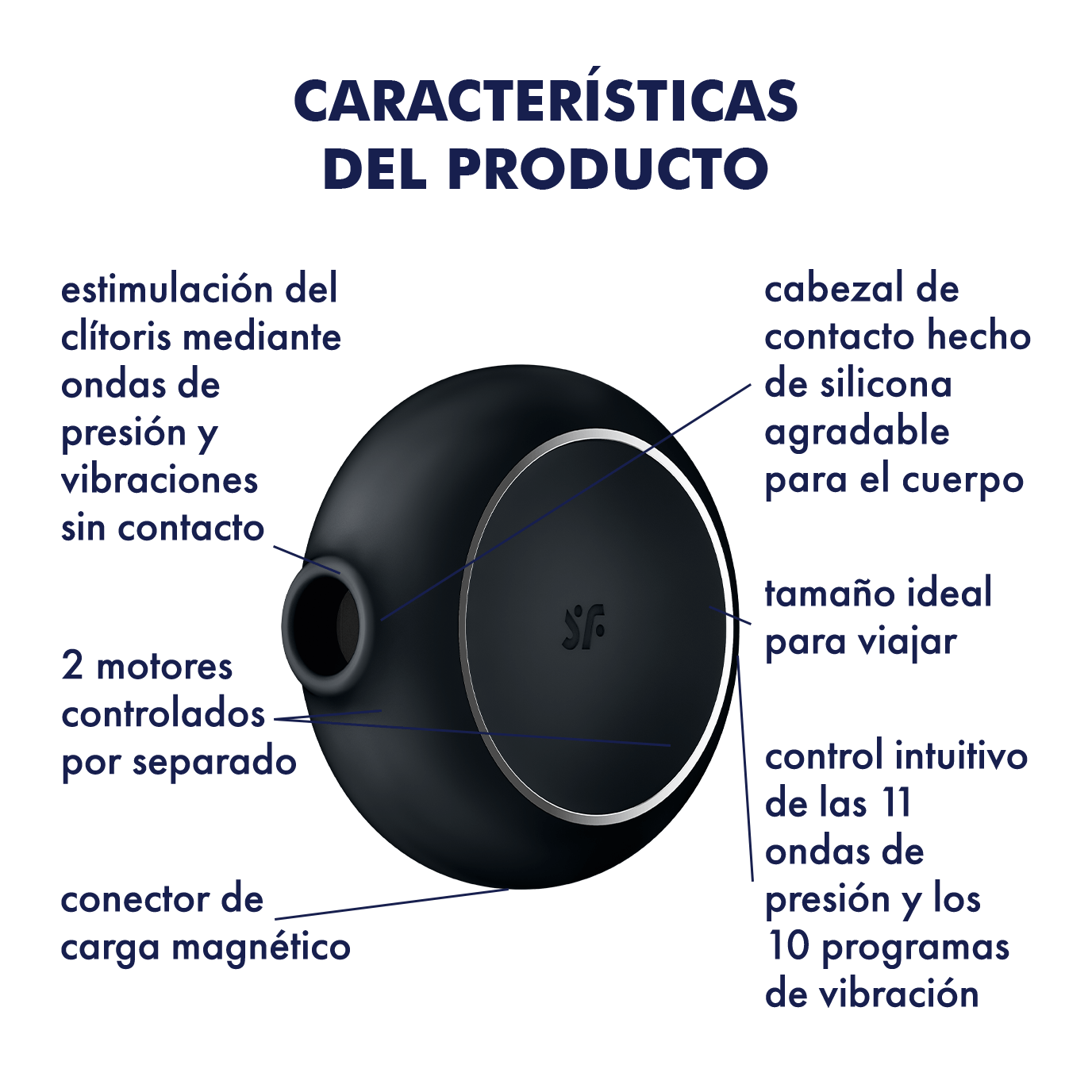Não prescindas de prazer enquanto viajas ou estás fora de casa, leva o Satisfyer Pro To Go 3 contigo! Aproveita a combinação de ondas de pressão e vibração: 2 motores potentes com 11 intensidades de ondas de pressão e 12 programas de vibração garantem uma estimulação do clitóris sensual e oferecem inúmeras opções de combinação, de suave a intensa.